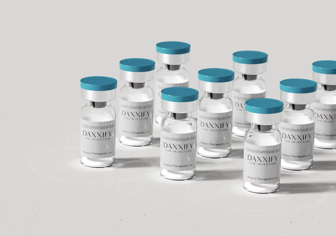 Daxxify and similar neurotoxins block nerve signals to facial muscles, relaxing them to reduce the appearance of expression lines and wrinkles. Results are visible within 2-7 days and last 3-5 months.
